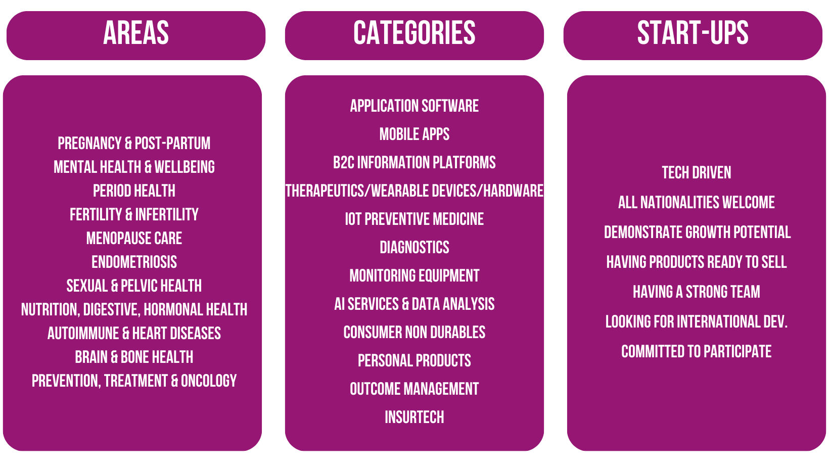 - Community engagement: Become an integral part of a global femtech community, connecting with like-minded innovators committed to transforming women’s health.